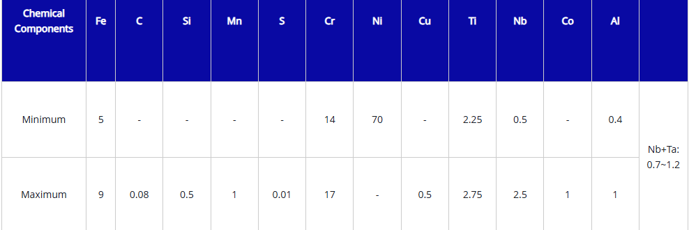 The chemical composition of Inconel X-750 is as follows (by weight percentage):
