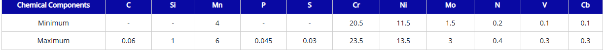 PMI STEEL Nitronic 50 is an austenitic, nitrogen strengthened steel that has corrosion resistance superior to grade 316 and 317 stainless steels. It has very good mechanical properties at both sub-zero and elevated temperatures. The alloy is capable of retaining low magnetic permeability even after exposure to sub-zero temperatures or severe cold working conditions.